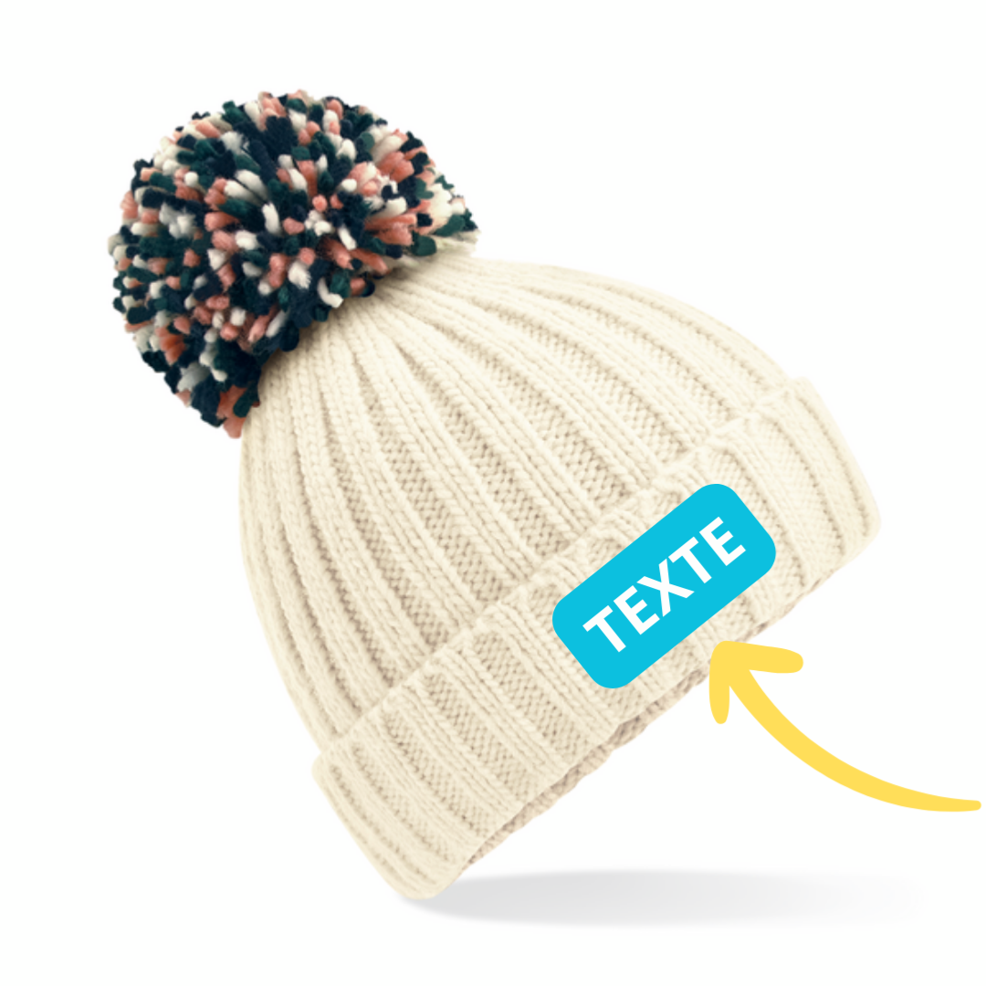 Modèle en maille côtelée épaisseGrand pompon luxueux
