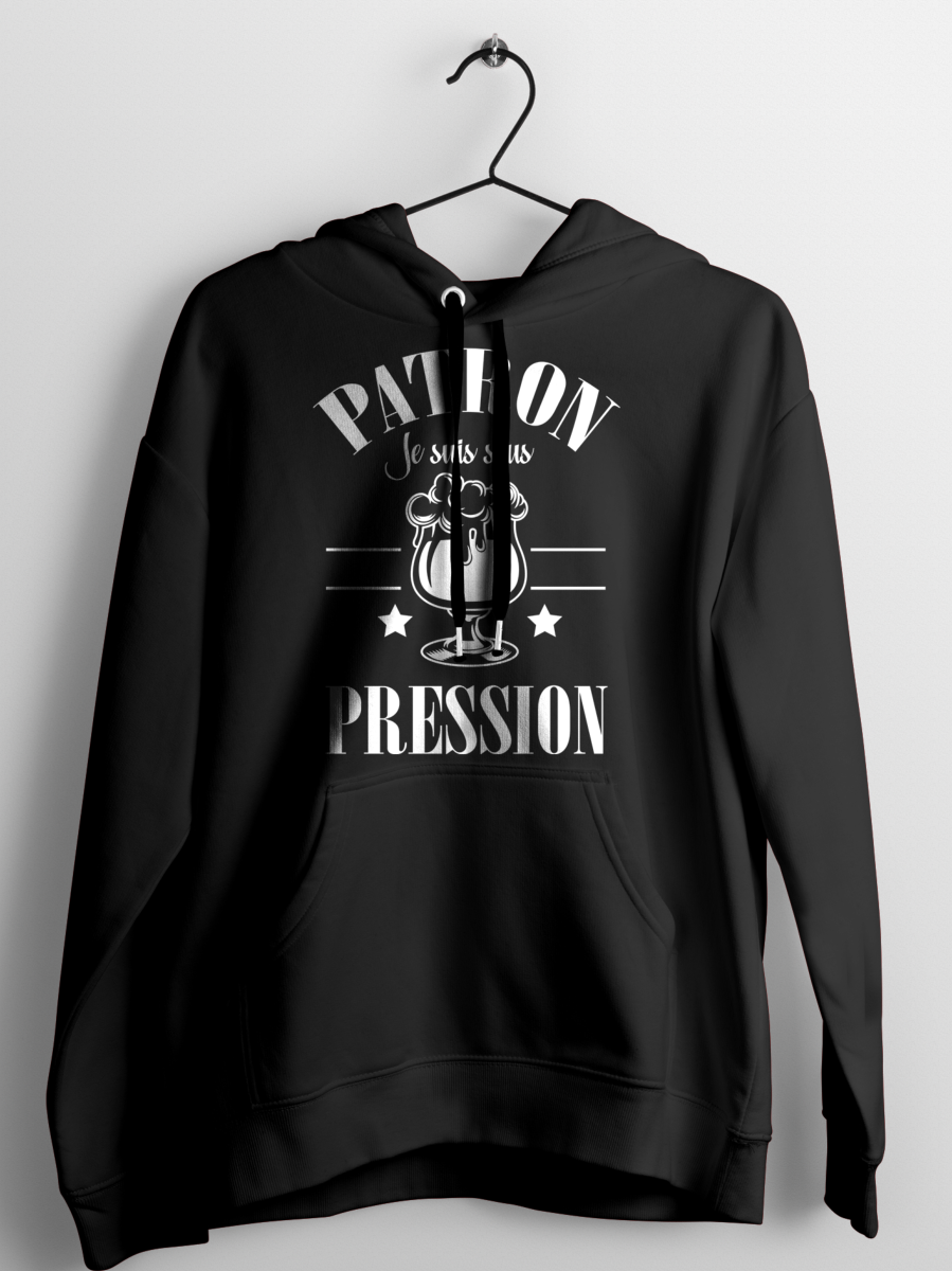 SWEAT A CAPUCHE " PATRON JE SUIS SOUS PRESSION"